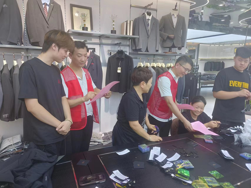 隨后,黨員們深入錢塘衣城各商戶,發(fā)放防汛知識手冊。他們結合“7·20”特大暴雨真實案例,向商戶現(xiàn)場講解預警信號含義、暴雨洪澇危害及自救互救方法,提醒大家務必增強汛期安全意識,提前做好防范措施。