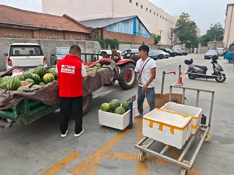 了解到這一情況后,市投集市未來路市場管理人員立即主動上前,與瓜農(nóng)深入溝通,并迅速協(xié)調(diào)安排,將整車2000余斤西瓜轉(zhuǎn)運至市投集市未來路市場內(nèi)避雨銷售。市場不僅免費提供惠農(nóng)攤位,還通過線上線下渠道幫助推廣,號召市民朋友們愛心助農(nóng)。