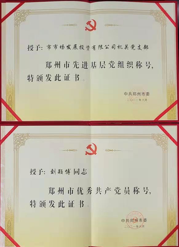 七一前夕,鄭州市召開“兩優(yōu)一先”表彰大會(huì),隆重表彰為鄭州作出突出貢獻(xiàn)的優(yōu)秀黨員、優(yōu)秀黨務(wù)工作者和先進(jìn)基層黨組織。會(huì)上,公司機(jī)關(guān)黨支部榮獲“鄭州市先進(jìn)基層黨組織”榮譽(yù)稱號(hào),公司董事會(huì)秘書兼投資管理中心總監(jiān)、河南省暢尚農(nóng)業(yè)科技有限公司總經(jīng)理劉穎博榮獲“鄭州市優(yōu)秀共產(chǎn)黨員”榮譽(yù)稱號(hào)。